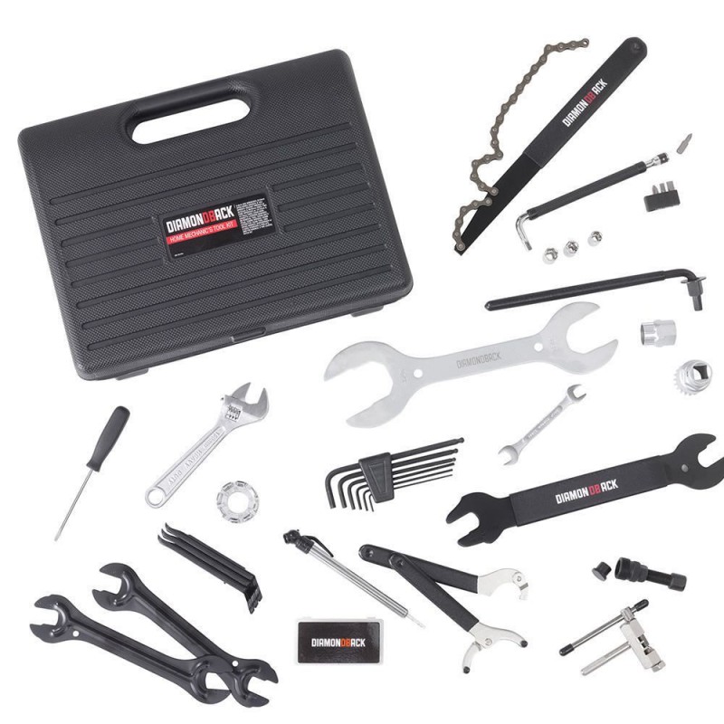 Este kit de herramientas para bicicletas de 28 piezas es un gran paquete de arranque para cualquier mecánico de bicicletas en casa. Incluye: llaves hexagonales de 2-8mm, llave de boca abierta de 9 / 10mm, llave ajustable de 6 ", llave para auriculares con extremos de 30 / 32mm y 36 / 40mm, dos llaves de cono con extremos de 13 / 15mm y 14 / 16mm, látigo de cadena, removedor de anillo de bloqueo de cassette, herramienta de desmontaje de pedalier; extractor de manivela, herramienta de cadena, llave universal de rayos, destornillador con dos tamaños estándar y brocas Phillips, llave universal de clavijas, tres palancas de neumáticos y un kit de parche, en una caja compacta.
