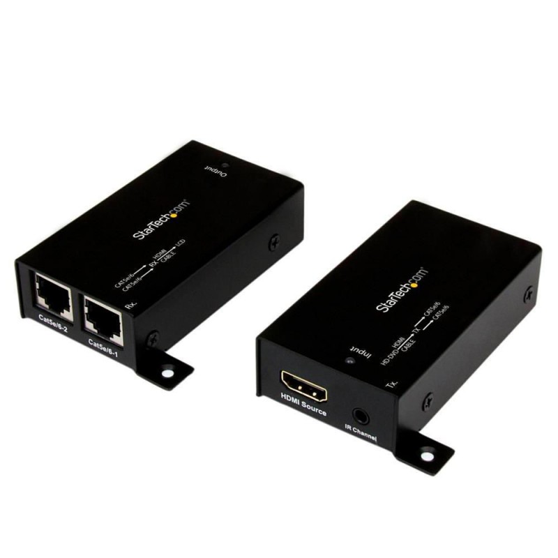StarTech Kit Extensor Video Audio HDMI por Cable UTP 30m ST121SHD30 permite extender una señal HDMI de audio/video, así como una señal infrarroja de mando a distancia hasta 30 metros, a través de dos cables Cat5e o Cat6. Otra característica que añade versatilidad a este kit extensor HDMI es que obtiene la alimentación a través del bus HDMI y no requiere ningún adaptador de alimentación adicional. Con soporte para resoluciones de alta definición de hasta 1920x1080 / 1080 p.