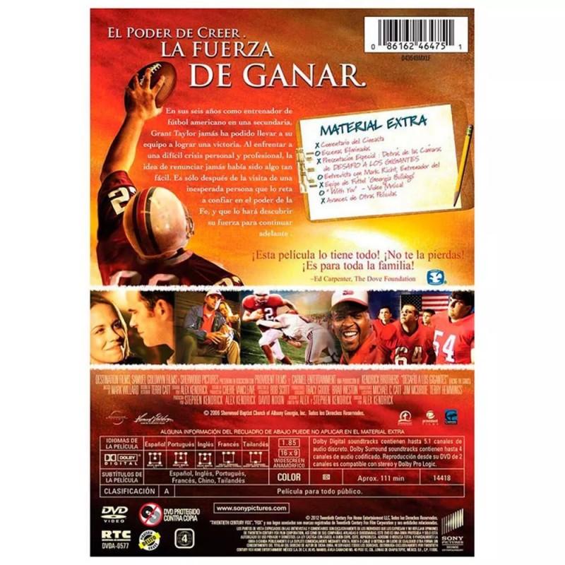 En sus seis años como entrenador de fútbol americano en institutos, Gran Taylor nunca ha llevado a sus Shiloh Eagles hacia la victoria. Enfrentado a una crisis aparentemente insuperable, tanto profesional como personal, la idea de renunciar nunca le ha resultado más tentadora. Sólo después de que un inesperado visitante le desafíe a confiar en el poder de la fe, descubrirá la fuerza para perseverar y ganar. LA IMAGEN DEL PRODUCTO SOLO ES INFORMATIVA ASI COMO EL CONTENIDO EXTRA PUEDE CAMBIAR.