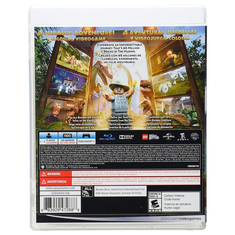 LEGO Jurassic World es el primer juego donde los jugadores serán capaces de revivir las experiencias de las cuatro películas jurásicas, en forma de LEGO, Tendrás la posibilidad de controlar no solo personajes sino también dinosaurios, sembrar el caos como tu dinosaurio favorito hecho de LEGO no será ningún problema.